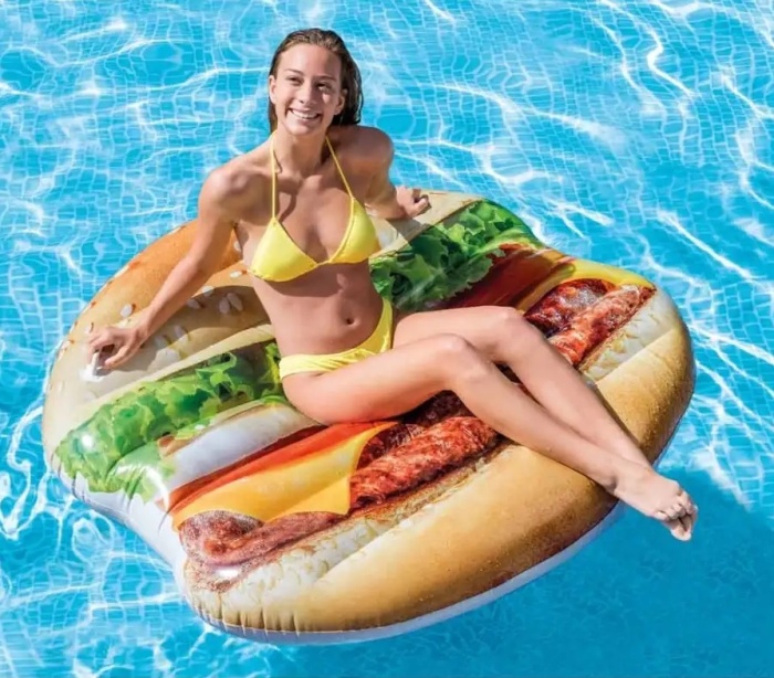 Надувной плот "Гамбургер" 145х142 см (Intex 58780) добавит ярких красок в ваши летние фотографии. Для удобства сверху матраса имеется 2 пластиковые ручки-держателя.