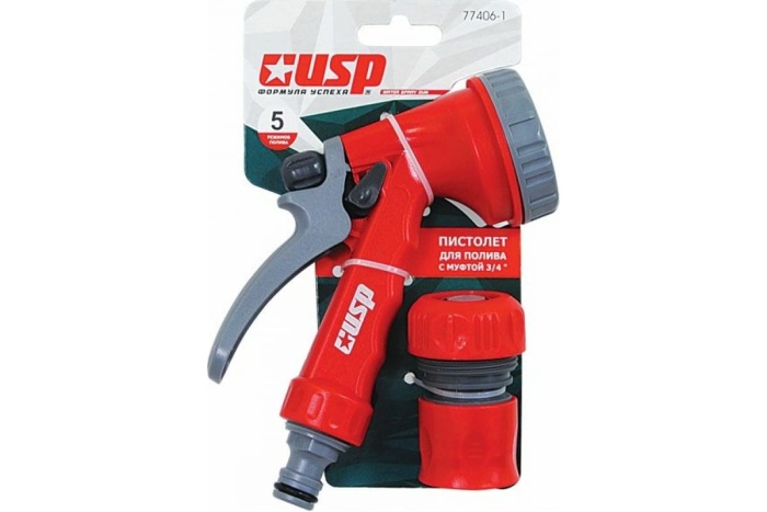 Пистолет для полива Usp 5 режимов, с муфтой 3/4" 77406-1 - незаменимый помощник для полива садовых растений.