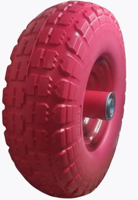 Бескамерное колесо из полиуретана асимметричная ступица 4.10/3.5-4 внутренний диаметр подшипника на выбор16 мм и 20мм. Длина оси 55мм. предназначено для комплектации тележек складского и строительного типа грузоподъемностью 150 килограмм.