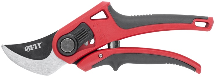 Профи. С ленточной пружиной. Режущие кромки внахлест. Регулировка раскрытия лезвий. Для обрезания побегов и веток диаметром до 20 мм. Материал: лезвие из высокоуглеродистой инструментальной стали с тефлоновым покрытием, пластиковые прорезиненные ручки, усиленные