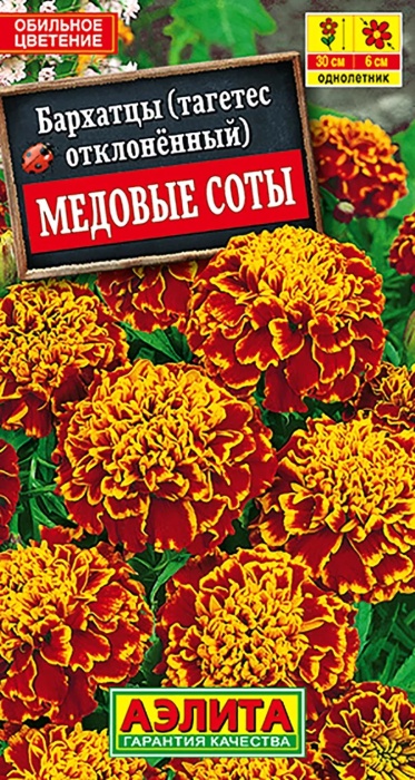 Веселые бархатцы хотят стать друзьями пчел и именно поэтому свои прелестные лепестки расположили в форме медовых сот. Они обладают целым букетом пьянящих ароматов, перед которым невозможно устоять. Великолепие цветения продолжается с весны до заморозков. Используются для оформления клумб, бордюров, а так же для украшения балконов и окон. Агротехника. Выращивают рассадным способом. Посев проводят в первой половине апреля. Всходы появляются через 4-8 дней после посева, сеянцы пикируют в фазе 1-2-х настоящих листьев. Рассаду высаживают в конце мая – начале июня. Схема посадки 30х30 см. Возможен посев семян в открытый грунт в мае на глубину 1,5-2 см. Для продолжительного и обильного цветения растениям необходим своевременный полив, регулярная прополка, рыхление и подкормка минеральными удобрениями.