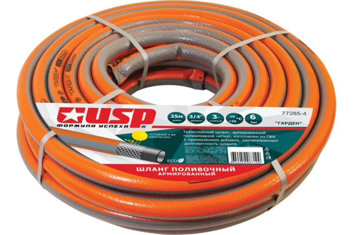 Шланг изготовлен из ПВХ и имеет армированный слой, что обеспечивает прочность и устойчивость к разрывам.