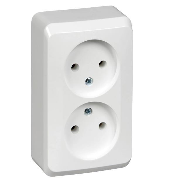 ЭТЮД О/У двойная РОЗЕТКА без заземления без шторок 16А 250B, БЕЛЫЙ, Россия
