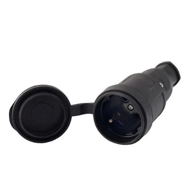 Розетка ЭРА R8-B-IP44 каучуковая c заземлением прямая 16A IP44 черная