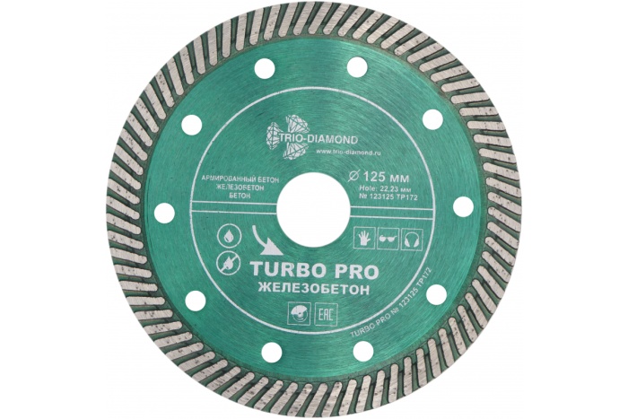 Особенности: рифленая кромка и компенсационные отверстия, диск предназначен для работы с твердыми армированными материалами.