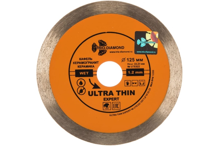 Технические характеристики сплошного ультратонкого отрезного алмазного диска TRIO-DIAMOND UTE522