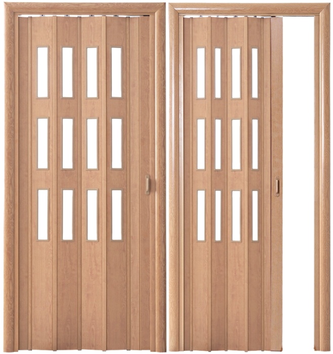 Термо и влагоустойчивая межкомнатная остекленная дверь гармошка с текстурой «3D-эффект» натурального дерева. Полностью укомплектована и готова к установке, даже самостоятельной. Имеет стандартные размеры: 2050 мм в высоту и 860 мм в ширину. Легко моется водой и моющими неабразивными средствами. В упаковке вы найдёте всё необходимое: от саморезов до инструкции.