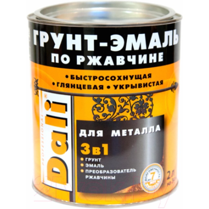 Грунт-эмаль по ржавчине Дали 3 в 1 отвечает всем современным требованиям безопасности – не содержит толуола и соединений свинца – поэтому подходит как для наружного, так и для внутреннего применения.