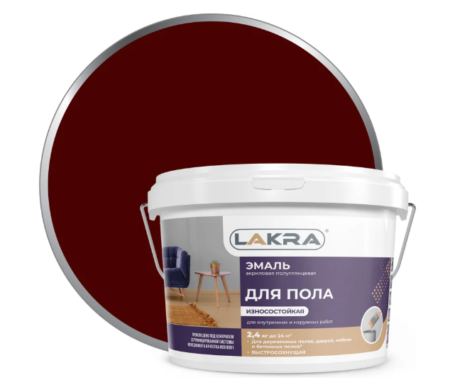 —Краска акриловая для пола красно-коричневая 2,4 ЛАКРА