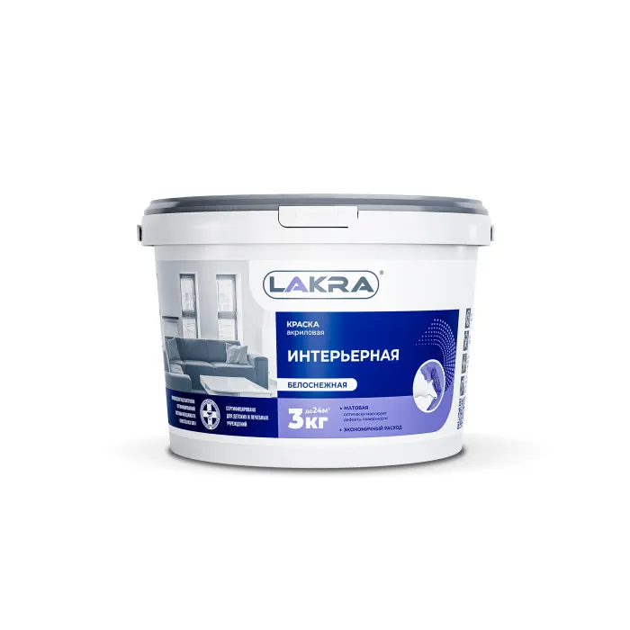 —Краска ВД интерьерная белая 3кг ЛАКРА