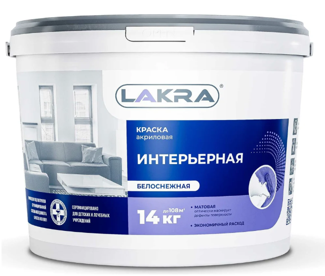—Краска ВД интерьерная белая 14кг ЛАКРА