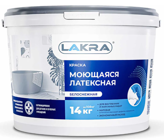 —Краска латексная моющаяся белая матовая 14кг ЛАКРА
