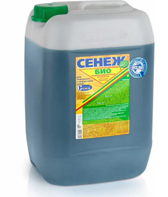 Антисептик СЕНЕЖ БИО 10 кг 586117 предназначен для усиленной защиты древесины от гниения, плесени, синевы и насекомых-древоточцев при эксплуатации в непосредственном контакте с человеком и домашними животными внутри помещений и на открытом воздухе в особо тяжелых условиях увлажнения, длительном воздействии атмосферной или почвенной влаги, при контакте с грунтом, органическими отходами, в том числе, в условиях тропического и тропического влажного климата самостоятельно или в качестве биозащитной грунтовки под ЛКМ.