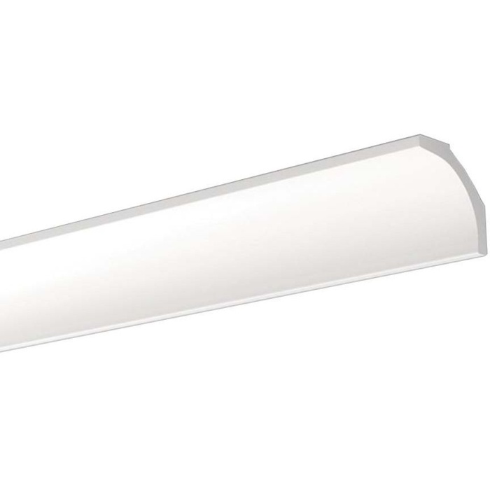 Белый потолочный плинтус бренда NMC из полистирола средней плотности - пенопласта.
