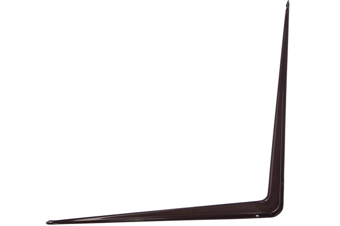 Кронштейн  представляет собой уголок с разными по длине сторонами, зауженными и закругленными концами. На каждом конце, а также на боковых сторонах крепежа, расположены монтажные отверстия . По всей длине уголка проходит сплошное ребро жесткости. Изделие изготовлено из стали. Стойкая и долговечная полимерная краска  защищает его от коррозии и придает кронштейну эстетически привлекательный вид. Кронштейн предназначен для безопасного крепления подвесных полок к стене разного назначения: книжных, для кухонной утвари и инструмента.