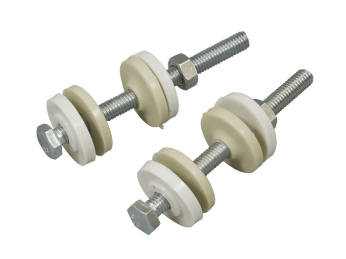 В комплект входят конусные прокладки для установки внутрь бачка, винты, прокладки для предотвращения сколов, шайбы и два варианта крепления: шестигранные гайки под ключ и барашки для закручивания руками, без инструмента.