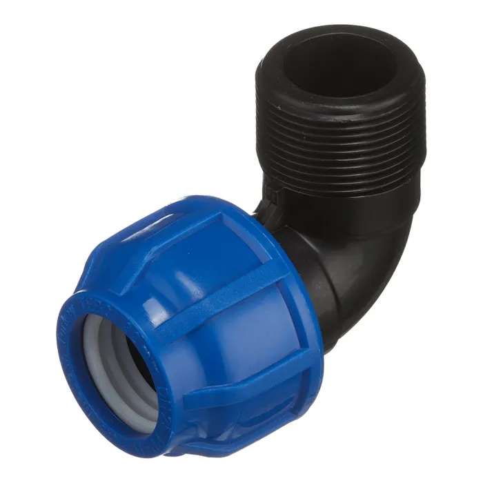 Отвод компрессионный с наружной резьбой — фитинг предназначенный для соединения под углом полиэтиленовой трубы и элементов с резьбовыми соединениями.