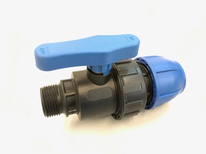 Компрессионный шаровый кран ПНД 40х1.1/4 наружная резьба турецкой компании Poelsan, предназначен для установки на трубопроводах из полиэтиленовых ПДН труб в водопроводных системах предназначенных для питьевого или технического водоснабжения, а также используемых в системах орошения, системах напорной канализации.
