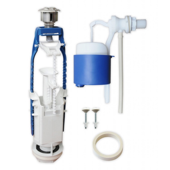 Тип арматуры: универсальная Для бачков с отверстием в крышке диаметром: 40 мм Пусковое устройство: кнопочное, двойной пуск Кнопка: хромированная Ввод: боковая подводка Установочная высота: 280—350 мм Посадочный диаметр: 60 мм Присоединение штуцера: 1/2 дюйма