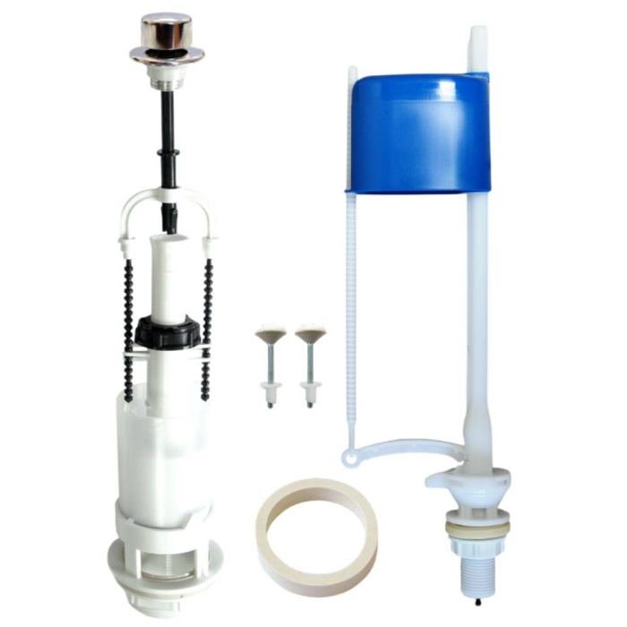 Комплекты арматуры со штоковым клапаном выпуска предназначены для использования с керамическими бачками, отверстие в крышке которых имеет небольшой диаметр (примерно Ø25 мм) Комплект: Наполнительный клапан К 57.00.00 с нижней подачей воды, выпускной клапан К 110.00.00 с металлизированной или пластиковой ручкой, комплект крепежа, прокладка между бачком и унитазом, инструкция по установке. Применение: Для керамических бачков с нижней подачей воды, с отверстием в крышке бачка Ø25 мм.