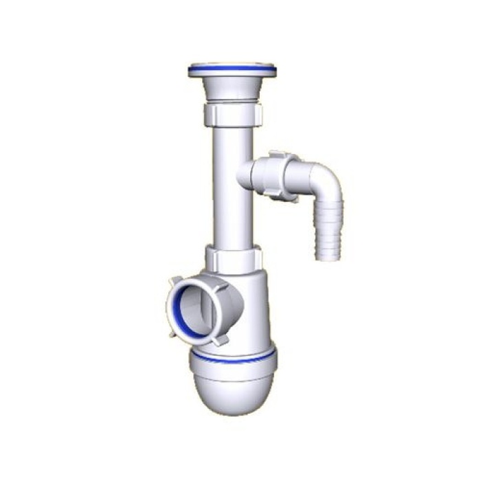 Сифон для кухонных моек с диаметром сливного отверстия 50мм, бутылочного типа с увеличенным корпусом. С разборным выпуском и нержавеющей решеткой. Выход для подключения к канализации 40мм.