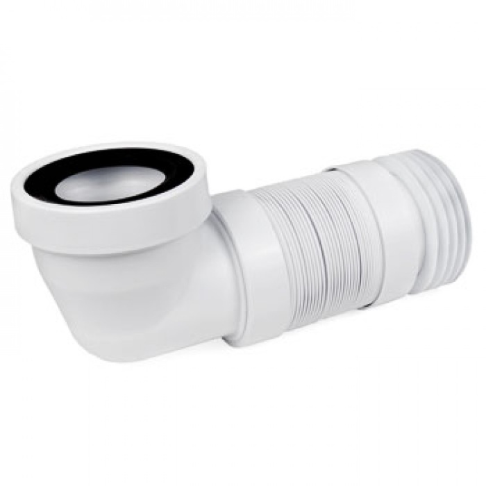 Удлинитель гибкий для унитаза выход в канализацию 110 мм, угол 90°, длина 250-520 мм. Область применения: - для пластиковых труб - для подключения унитаза к канализационному стоку Свойства: - диаметр соединения: 110 мм - материал: полипропилен Содержание комплекта: - гофрированный гибкий шланг - уплотнение Габаритные размеры мм. 350*145*145 Габаритные размеры коробки мм. 570*400*460