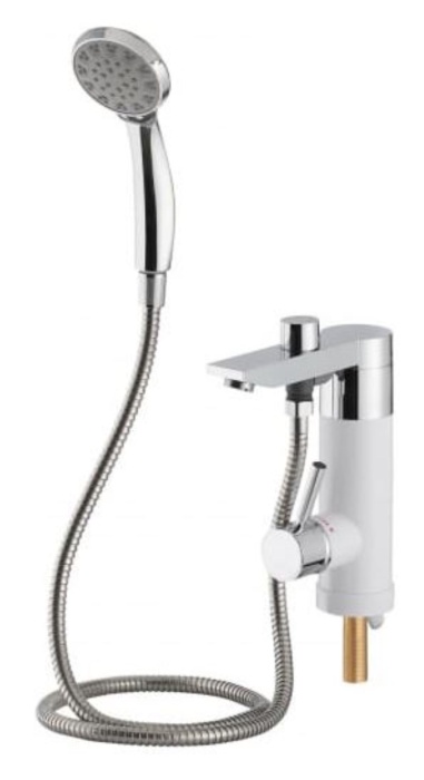 Кран-водонагреватель проточн. BКF-015 Unipamp (3000вт) бел.хром.пласт.плоск.излив +лейка