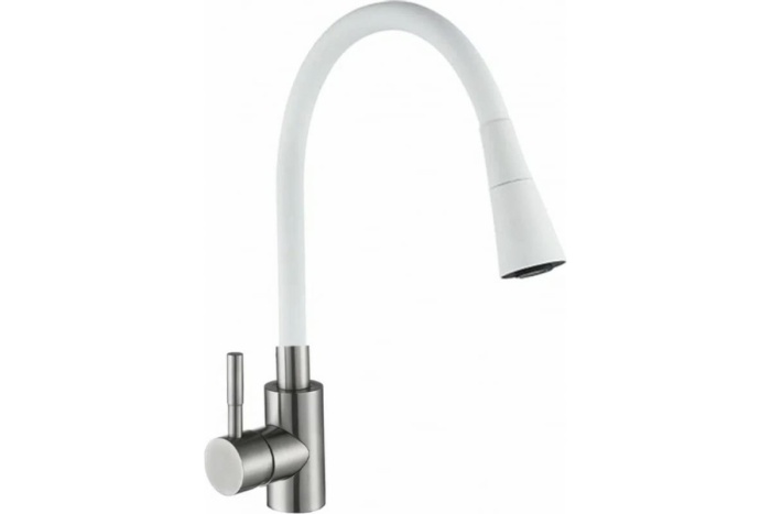 —Смеситель для кухни Антей ,шаровый, гибкий излив, Мармелад белый, нержавеющая сталь