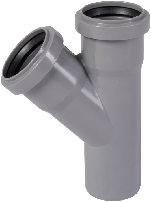 Тройник полипропиленовый  50х50 мм 45 градусов — соединительный элемент (фитинг), использующийся для внутренней разводки в системах хозяйственно-бытовой канализации гражданских и промышленных зданий. Фитинг имеет раструбное соединение, что позволяет производить монтаж без использования специального оборудования и инструментов.