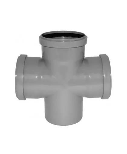 Переходная крестовина 110х110х110 90 градусов углом поворота применяется для устройства разветвления канализационных систем внутри жилых и общественных зданий. Данная крестовина используется на канализационных трубах 110 диаметра в местах разветвления труб