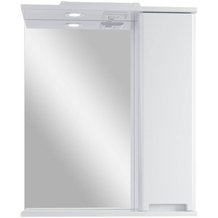 Зеркало со шкафом Sanstar Ориана 70 R 279.1-2.4.1. с подсветкой. Характеристики: Цвет: белый. Материал корпуса: ЛДСП. Материал фасада: МДФ. Покрытие корпуса: ламинат, матовое. Покрытие фасада: пленка, Зеркало со шкафом Sanstar Ориана 70 R 279.1-2.4.1. с подсветкой Белое глянцевое. Габариты (ШхВхГ): 704х747х171 мм. Система хранения: распашная дверца, открытая полка. Тип выключателя: клавишный. Тип подсветки: светодиодная точечная. Мощность: 4W. Оснащения: розетка, петли с доводчиком. Монтаж: подвесной. Ориентация: правая.