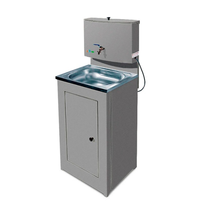 Умывальник выполнен из металлического листа 0,6 мм и окрашен порошковой краской + мойка выполненная из нержавеющей стали.