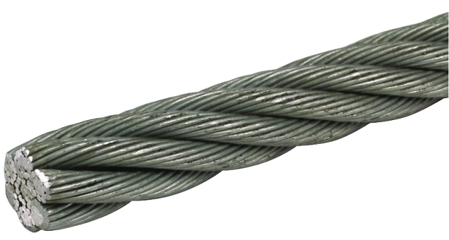 Изготавливается трос для растяжки методом плетения из проволоки. Она изготовлена из прочной стали, покрытой цинковым сплавом. Трос данного вида обладает отличными антикоррозийными качествами, прекрасно подходит для использования в агрессивных условиях внешней среды.