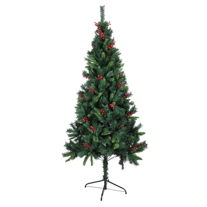 Ель искуственная 120 см ПВХ + ПЭТ, с красными ягодами