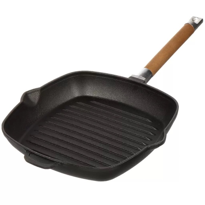 Сковорода-гриль чугунная ГАРДАРИКА 0626 26х26см,съемная деревянная ручка